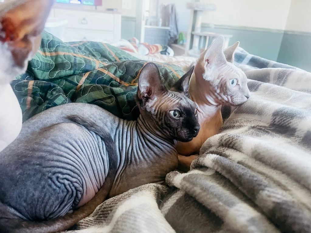 Meet our stud, Binx, aka Thachary Binx the Sphynx, aka Binky-boy. Binx embodies what a true sphynx is, he a such a loving companion. He is always searching for your attention. Binx enjoys snuggling on the couch, sitting on our shoulders, or hiding underneath his favorite blanket.